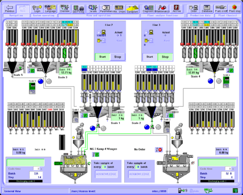 - Visualisierung und Animation: Eine detaillierte Darstellung der Abläufe auf mehreren Monitoren mit Animation erleichtert die exakte Überwachung der Anlage.