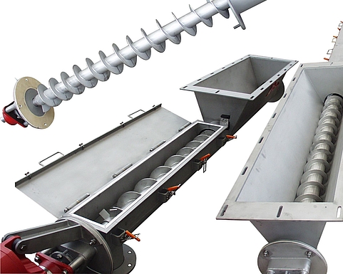 - Für aggressive Stoffe: Förderschnecken in korrosionsbeständiger Edelstahl-Ausführung.