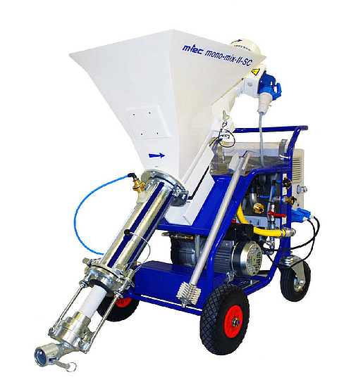 Die handliche Pumpe mit Edelstahltrog und 1ph Strom. Zusammen mit dem 1,8 kW-Antrieb. Ideal für vorgemischte Spachtelmasse und pastöse Produkte.