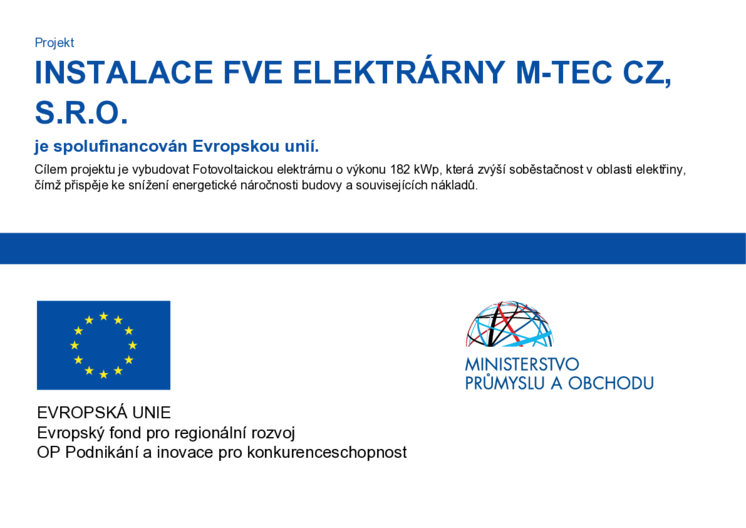 Projekt Instalace FVE elektrárny m-tec CZ, s.r.o. je spolufinancován Evropskou unií.