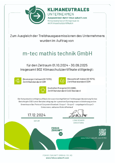 Klimaneutralität ist ein fortlaufender Prozess, der regelmäßig überprüft wird. Wir werden dabei von unserem Partner FOKUS-ZUKUNFT GmbH & Co. KG unterstützt, der uns mit seinem Know-how und seiner Erfahrung im Bereich CO2-Emissionen hilft, aktiv zum Klimaschutz beizutragen. Auch die Erhebung und der Kauf der Zertifikate wurden in Zusammenarbeit mit FOKUS ZUKUNFT durchgeführt.