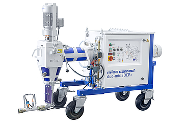Our m-tec connect® duo-mix 3DCP+ mixing pump enables connected working in dry mortar technology. Through standardized interfaces, machine data can be retrieved for control and planning, and if necessary, remotely controlled.